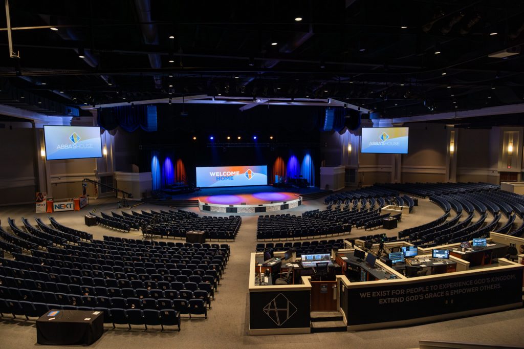 Abba’s House is a large evangelist church in Hixson, a suburb of Chattanooga, Tennessee. Its existing sound reinforcement system had become due for replacement, being life-expired and underpowered to satisfactorily cover a semi-circular auditorium with close to 3000 seats. An Alcons Audio pro-ribbon system has brought radically improved sound to worshippers and fans of Christian music alike.