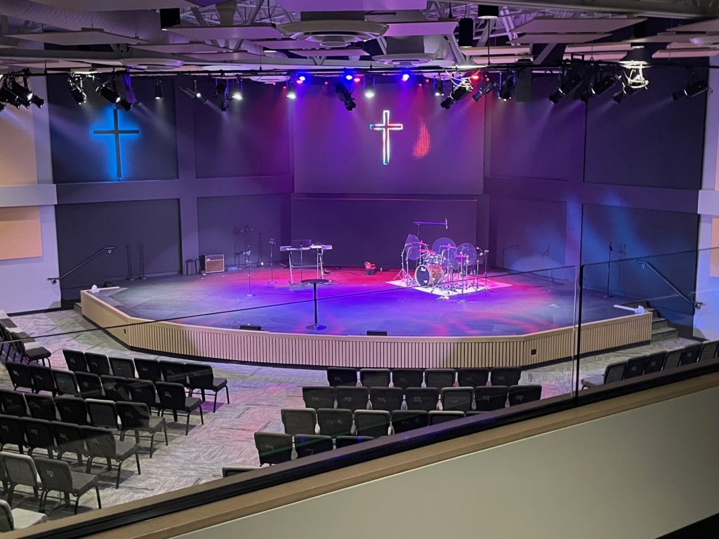 The sanctuary auditorium’s architecture posed notable challenges. The relatively low ceiling heights, combined with extensive HVAC systems, acoustic panels and stage lighting infrastructure, left limited real estate for loudspeaker placement. Here, the compact footprint and precise coverage patterns of the EM Acoustics products proved indispensable.