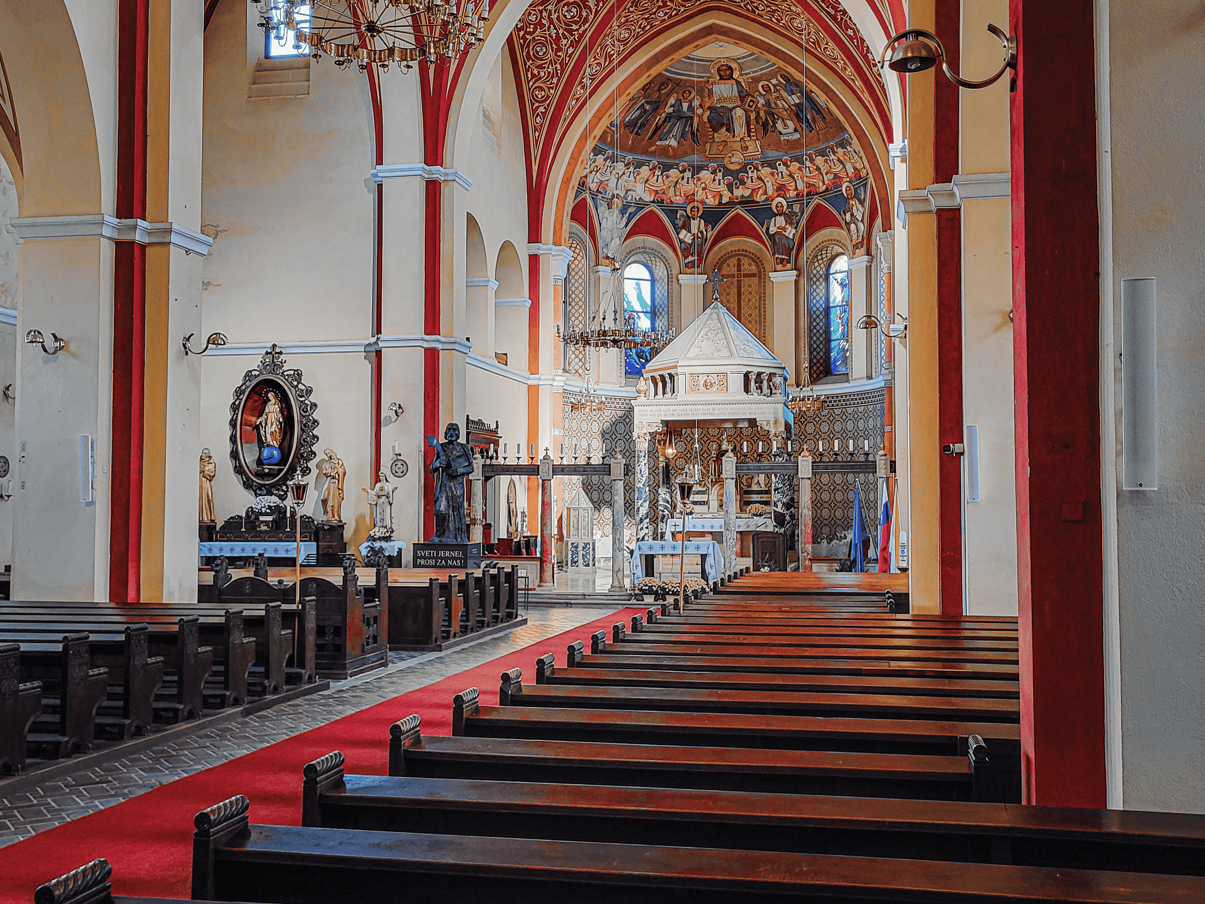 The small but picturesque Church of St. Bartholomew sits on top of a hill in the village of Sveti Jernej, surrounded by fields and vineyards near Slovenia’s eastern border. Originally built in the 14th century, the church has since undergone various transformations. In 1917, it was damaged so severely by an earthquake that it could not be used for several years, eventually being repaired and reopened in 1922.