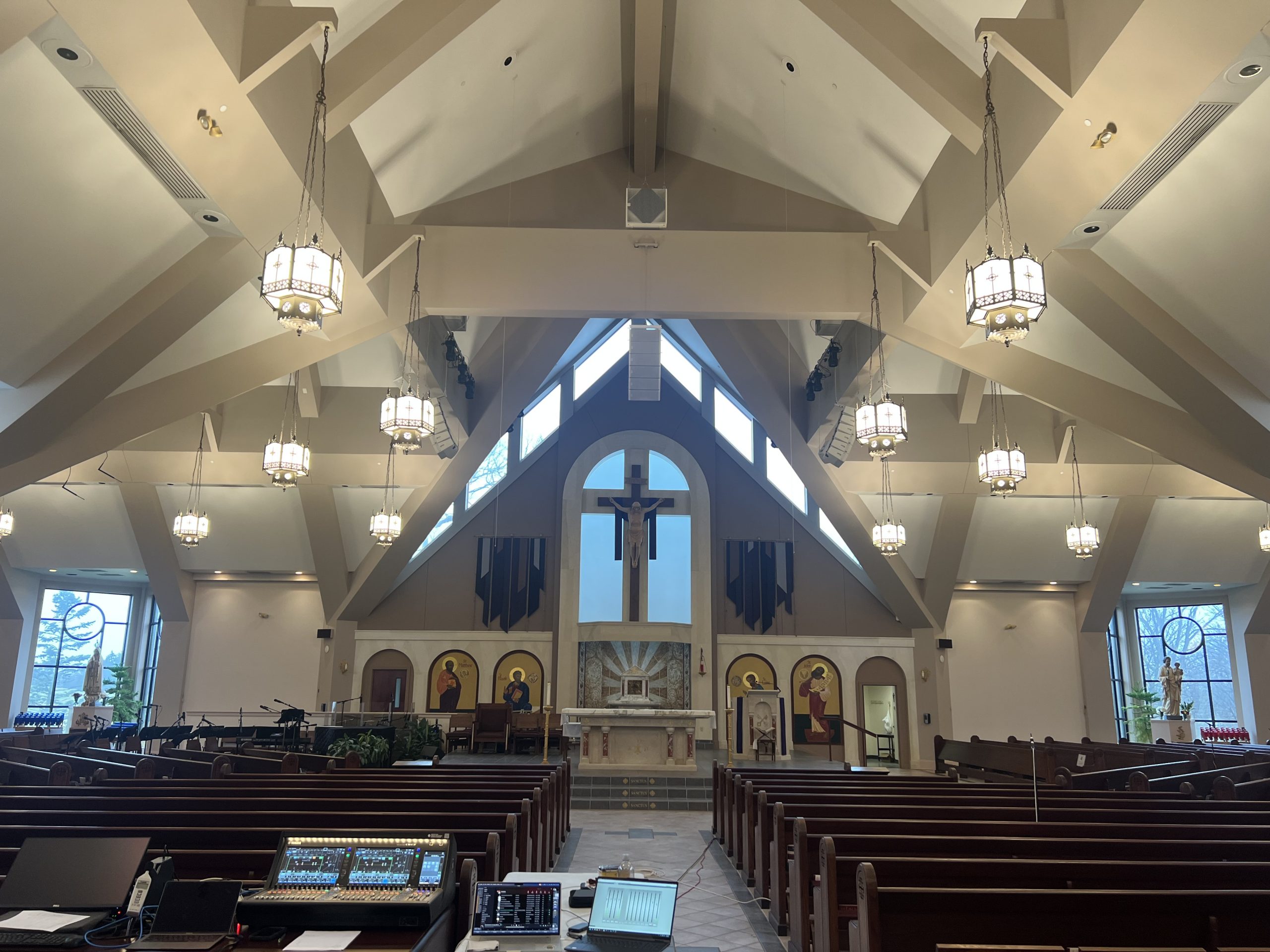Situated in Ann Arbor, Michigan, Christ the King was initiated in 1981 as a Catholic ‘Charismatic Renewal’ church. Its current church building was dedicated in 2001 — and although it may be fairly new by church standards, the church was still operating off its original sound system, which was struggling to provide even coverage across three naves, fanning out from a central space.
